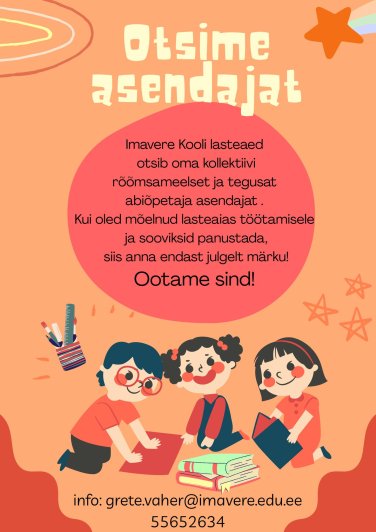 Imavere Kool kuulutab 3.-17. november 2025 välja konkursi 0,70 abiõpetaja ametikohale.