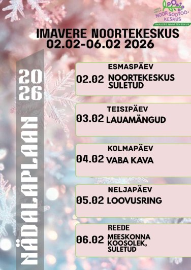 Noortekeskuse nädalaplaan