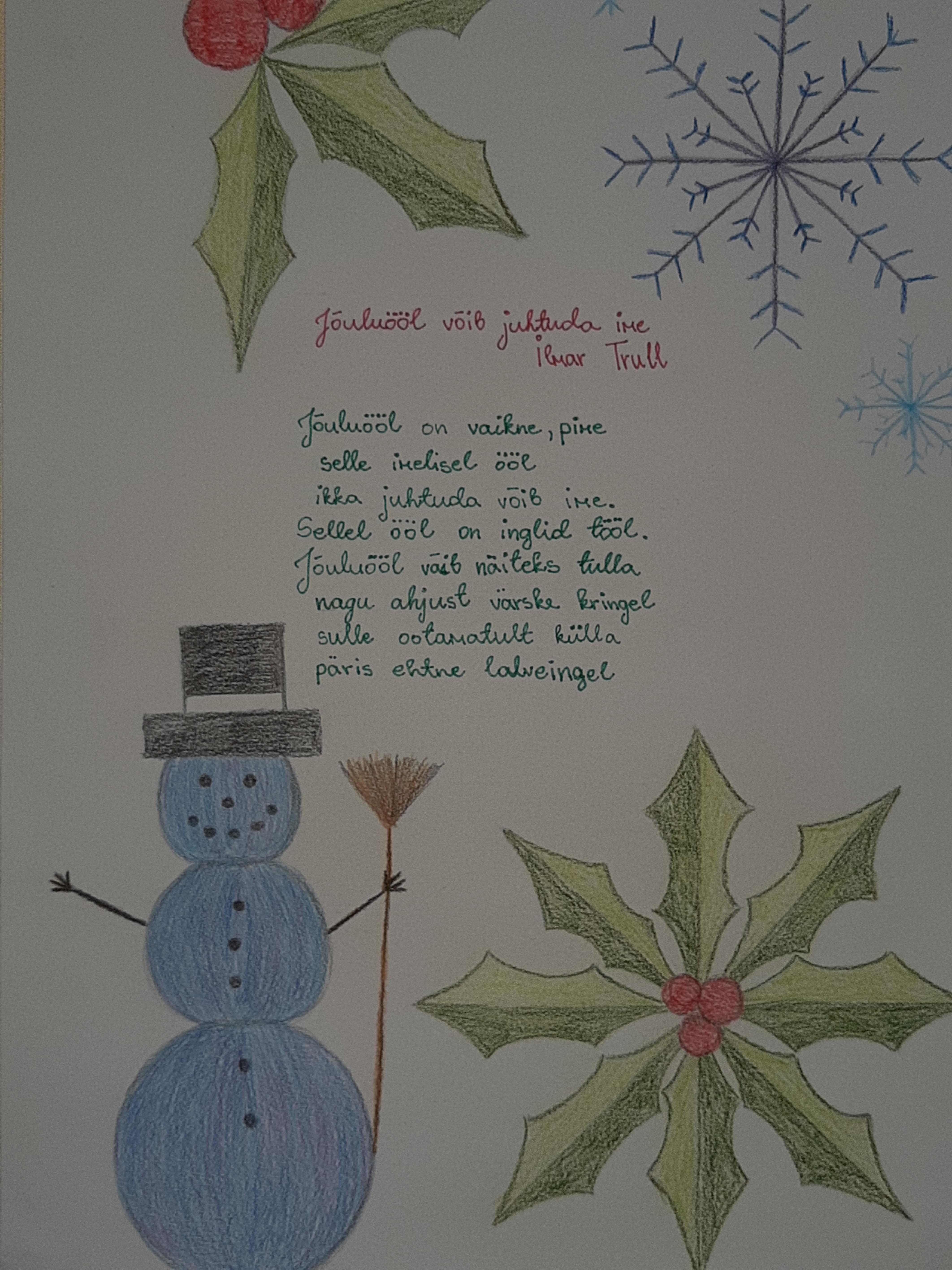 Täna toimus koolis advendihommik. Õp Krista tegi erinevatele klassidele ülevaate jõulude ajaloost. Koos lauldi jõulumuusikat ja vaadati jõulufilmi. Süüdati küünlad. Koolipere kaunistas koolimaja.