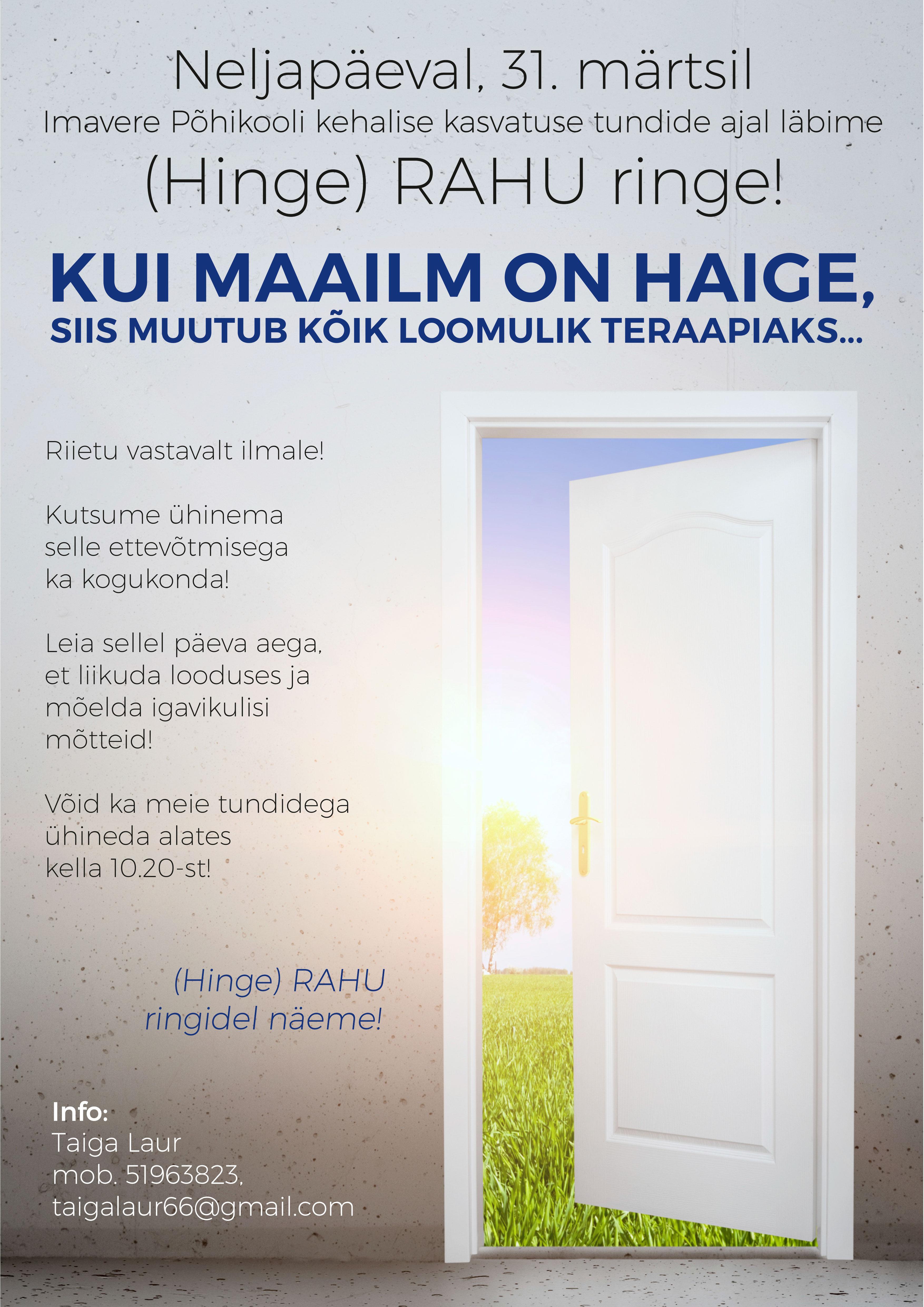 Eile toimusid teistmoodi kehalise kasvatuse tunnid. Õpetaja Taiga Lauri juhendamisel toimusid hingerahu tunnid. Õpilased jalutasid ümber koolimaja ja mõtisklesid oma tunnete üle. Kõigil olid kaasas omavalmistatud Ukraina lipud. Õp Taiga mängis akordionil erinevaid lugusid.