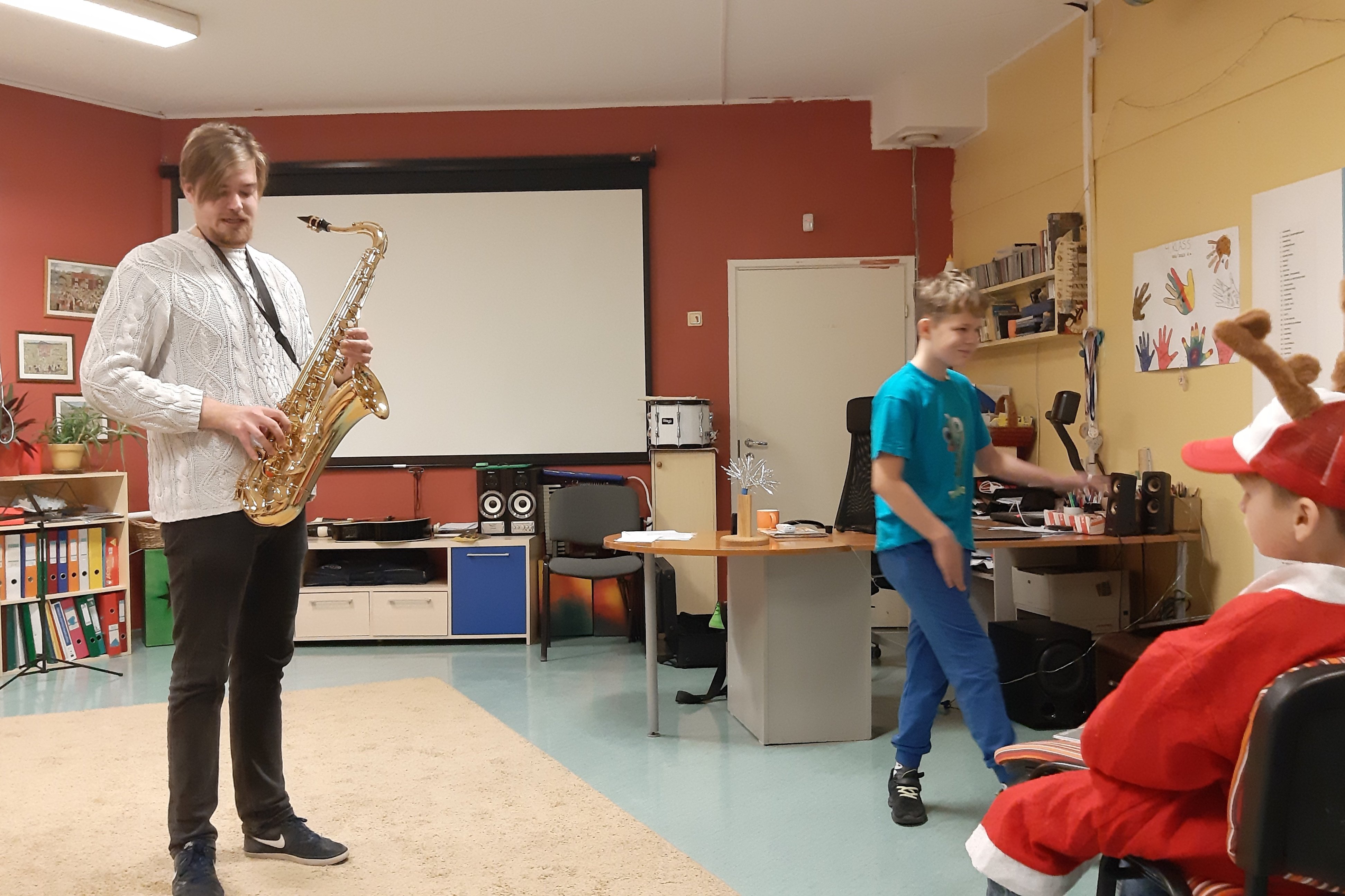 12.12.23 võttis muusikaõpetaja Markus kaasa ühe põneva pilli- saksofoni. Tunni teemaks olid erinevad pillid. 4. klassi lapsed said esmalt teadmisi teoorias ja seejärel praktikas. Olles ära kuulanud muusikalise tutvustuse põhiliste pilliliikide kohta, said õpilased ka täitsa ise saksofonil musitseerida. Õp Markus on erinevatest pillidest kõige kauem just saksofoni mänginud. Karmo hõikas, et mängigu õpetaja Kariibi mere piraatide tunnusmuusikat ja see saigi teoks. Laste silmad särasid ja meeleolu oli mõnus.