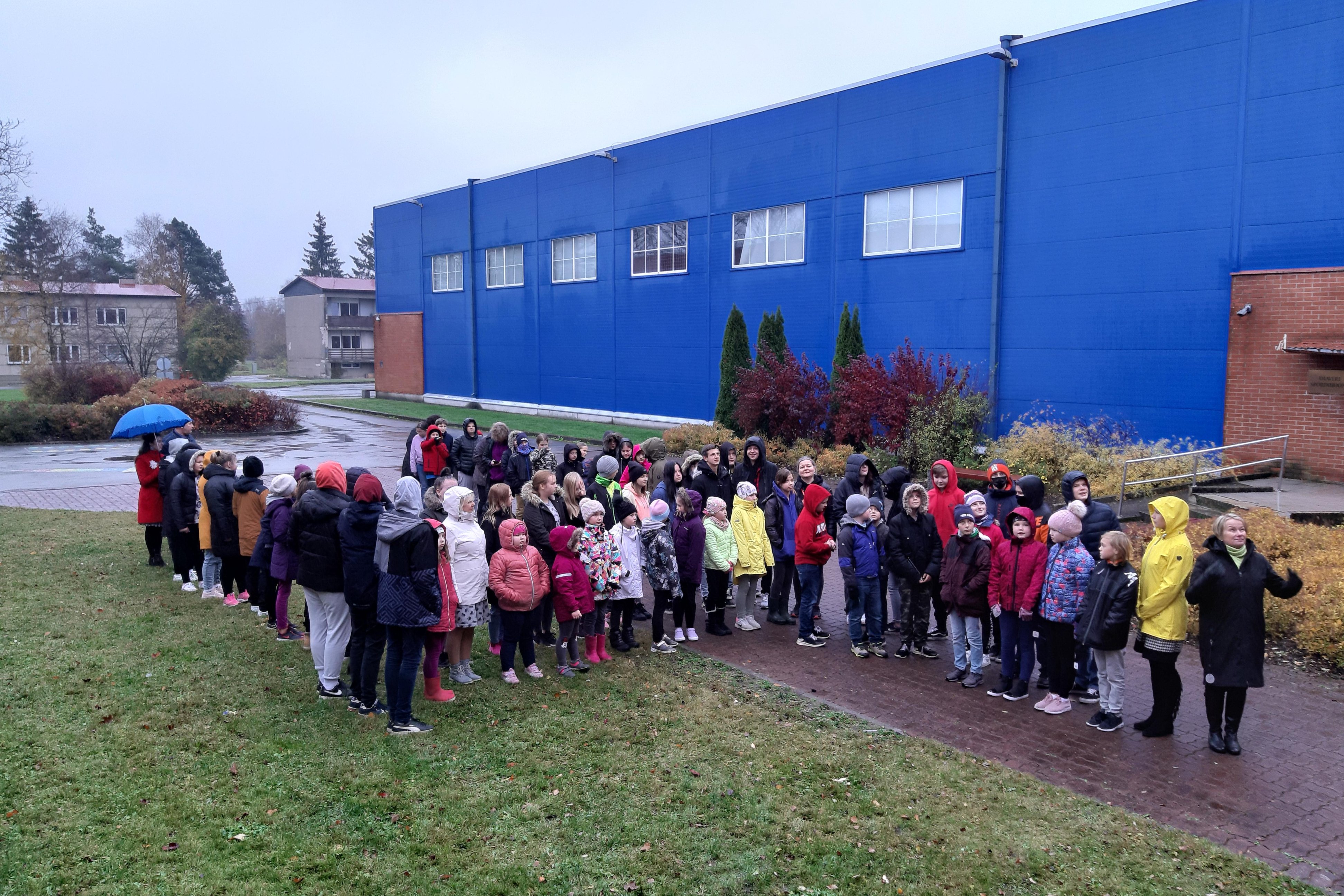 Eile oli päris vihmane päev, kuid sellest hoolimata liikusime kõik koos kooli sisehoovile ja sättisime end paika ühispildistamiseks. Kujutasime number nelja, et tähistada Järva valla sünnipäeva. Oli üks lõbus ettevõtmine üheskoos.