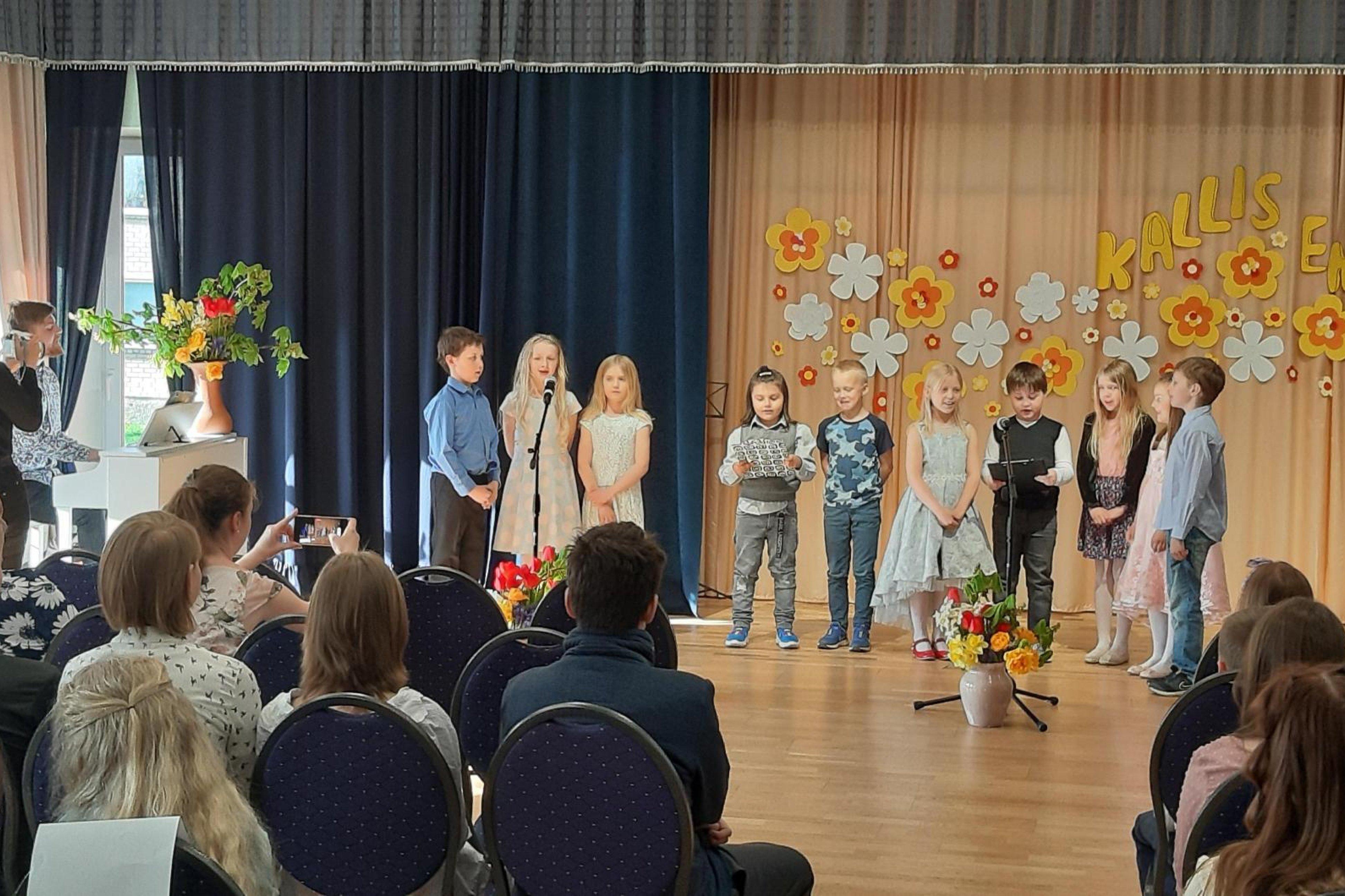 Lapsed esitasid väga ilusaid laule ja kontserdi lõpus kinkisid vanematele lilled.