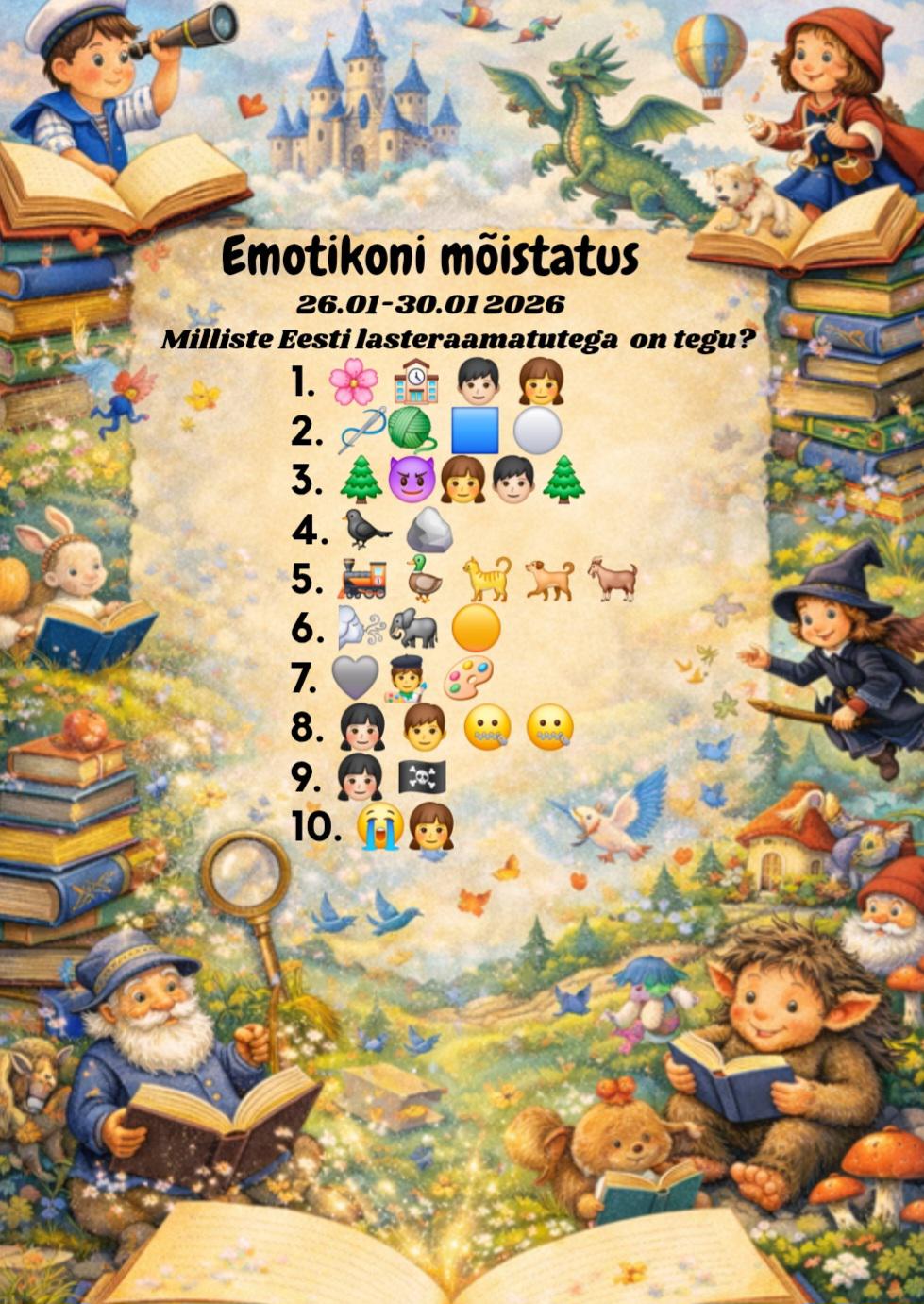 Sel nädalal said lapsed ja noored võimaluse süveneda Eesti lastekirjandusse ning oma teadmisi proovile panna. Emotikoni mõistatus „Eesti lasteraamatud“ pani proovile nii loogika kui ka raamatute tundmise.
